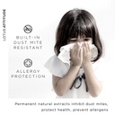 Nothing feels better than laying down on the LOTUS ATTITUDE: Norden Collection. This Anti-aging MicroSilk fabric technology has a thread count of 990 threads per 10 sq.cm., creating a smooth, silk-like texture. It helps to mitigate the possibility of pressure-induced wrinkles on the face, making your skin appear smooth and even. The Aloe Vera Tech, the fabric surface feels soft, smooth, and cool, similar to the Aloe Vera Gel, adding extra cooling to the fabric's touch. The Airflow System keeps the fabric cool and comfortable, ensuring a moisture-free, dust-mite-resistant experience. The sheets become softer and more durable over time, adding warmth to your bed. The natural color tones and accents create a sense of peace and relaxation in your bedroom.